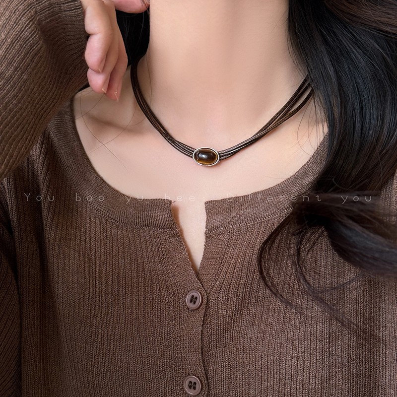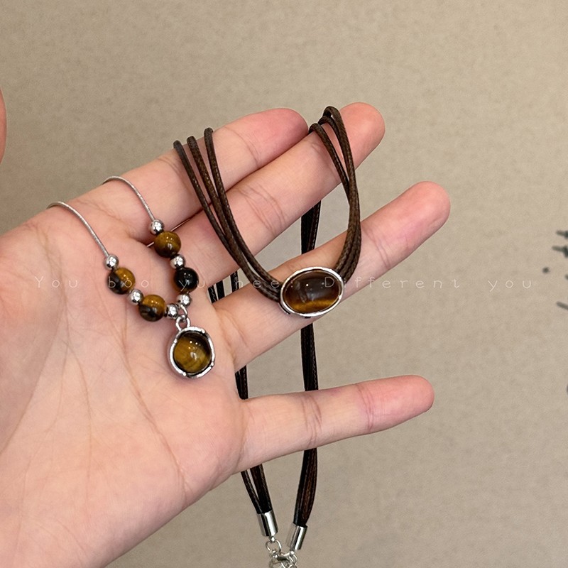 Leather tiger's eye necklace for autumn and winter 2025081113