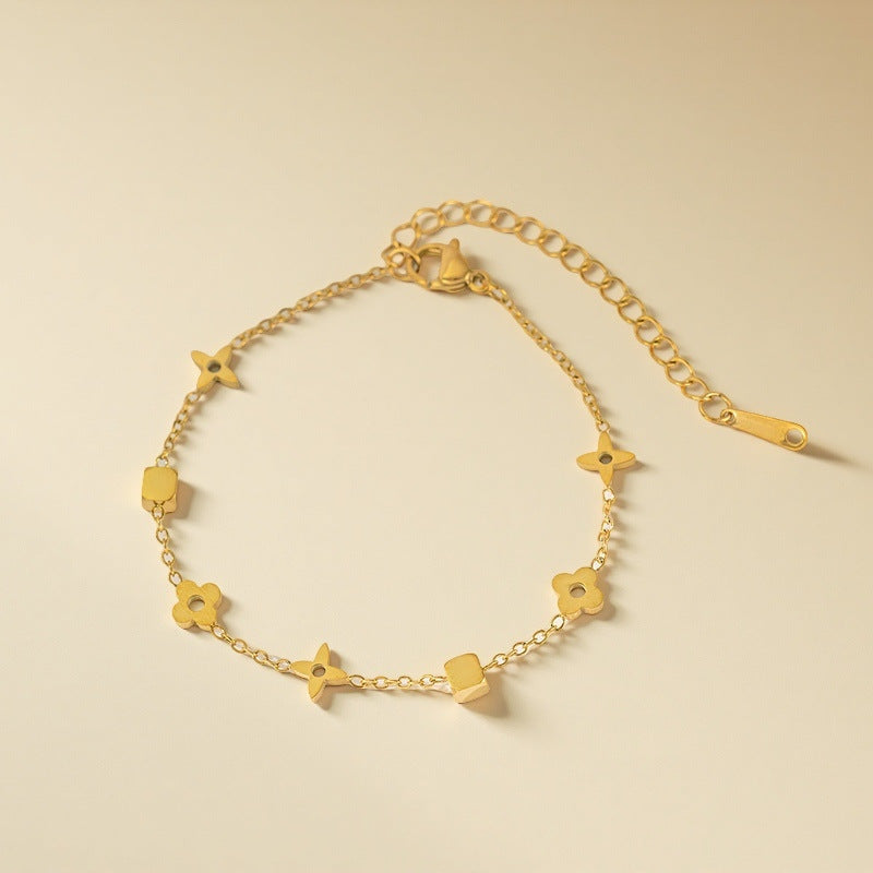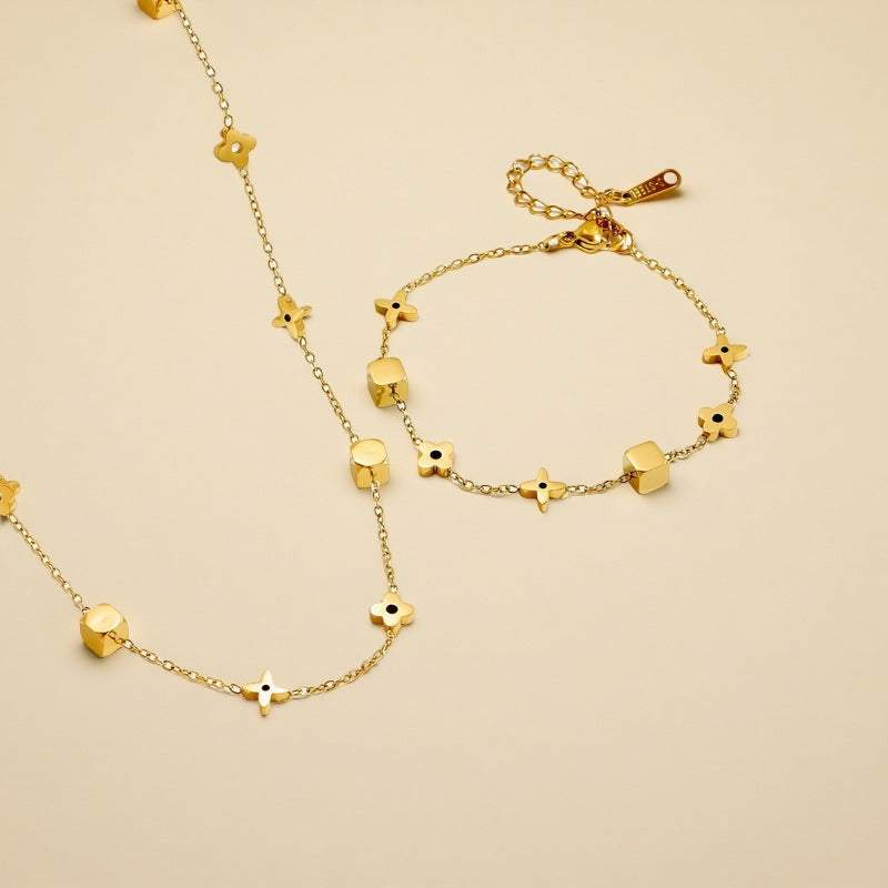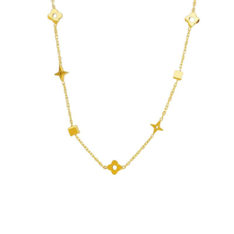Geometric small square flower titanium steel necklace 2025081307