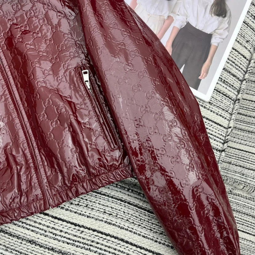New Double G Lapel Short Leather Jacket 1025102402