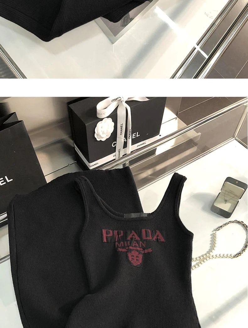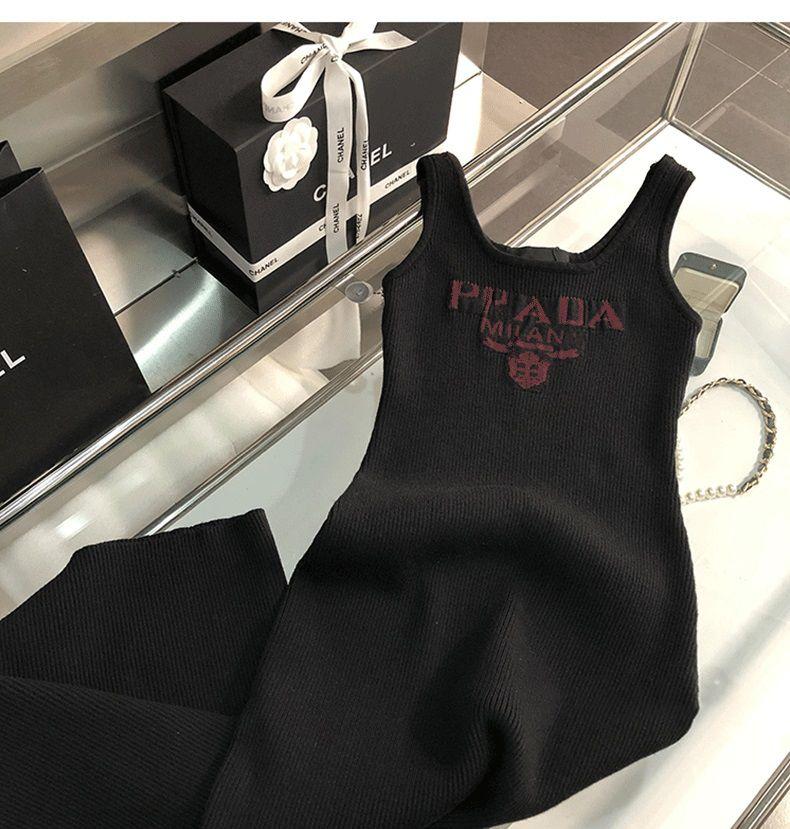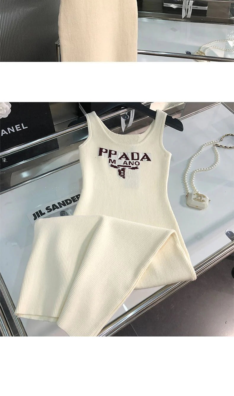 New Fashion All-match Ice Silk Knitted Sling Dress 1024040306