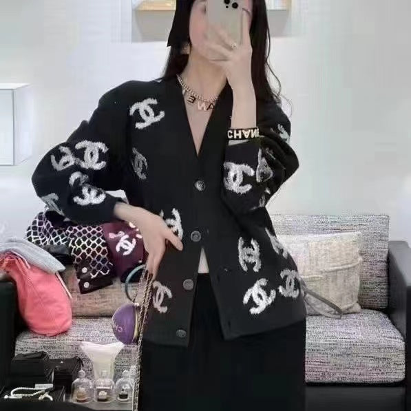 ORIGINAL STANDARD LOOSEVERSION VNECK DOUBLE CTHREE-DIMENSIONAL CARDIGANKNITTED JACKET